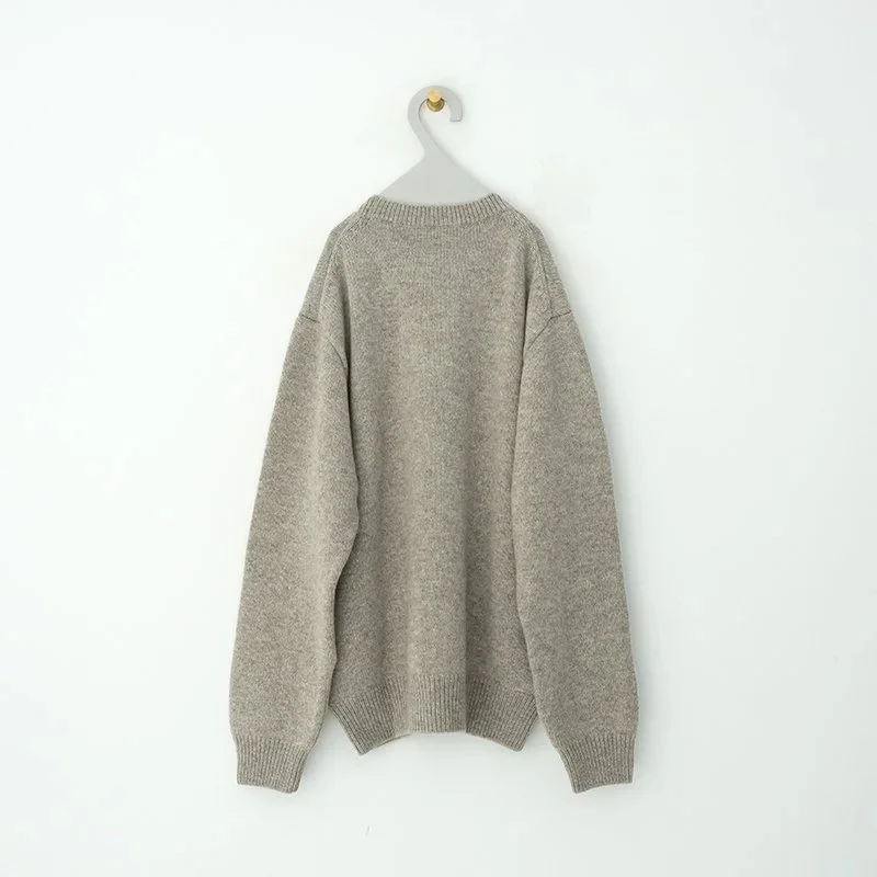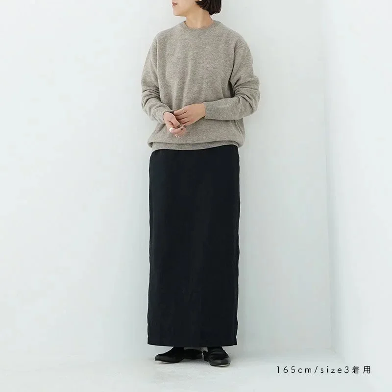 TORICI(トリチ)は手触りの良さ、軽さ、強さ、そして色彩の美しさ全てを満たす高品質な糸を世界中から厳選し日本の職人の手仕事で一着一着丁寧に編み上げる高いクオリティとシンプルなデザインで長く使える時代に左右されない「定番」としてのニットウェアブランドです。 「黒羊」ことブラックメリノは、イギリスで「変わり者」を意味する慣用句です。メリノウールを白く細かく改良する過程でごく稀に黒い羊が生まれるのだという。良質な毛を敢えて無彩色(ブラウンベージュ)の自然な色合いのまま厳選し、Share=「誰もが着れる、分かち合う」の想いをシリーズ名に乗せて。同素材のリブスカートとセットイン仕立ても魅力です。 程よく空気を含んでいて軽くて暖かいローゲージニットです。 TORICI 自動機 5G size: 3 3:身幅約59cm 着丈約67.5cm 肩幅約45cm 袖丈約60cm ※サイズには個体差がございます。ご了承くださいませ。 color: ベージュ,ブラウン material:wool 100% model: 165cm(ベージュ#3着用) 取扱い店舗…dieci kyutaro店2F size_chart