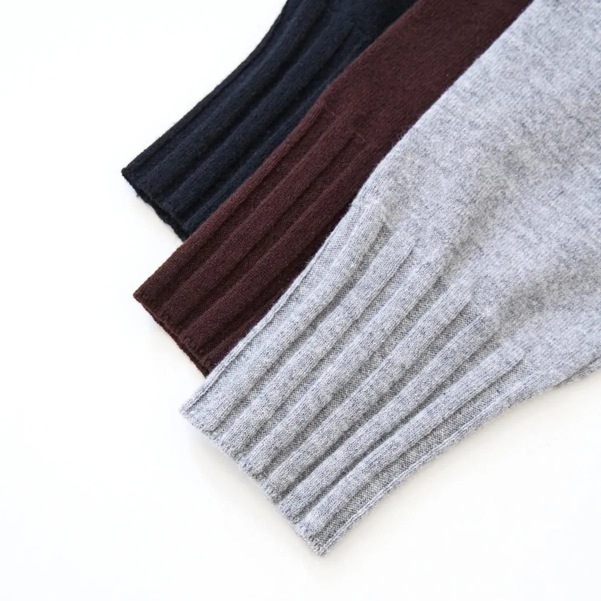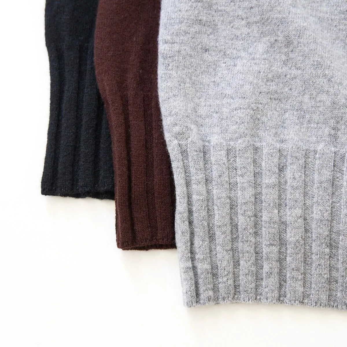 希少なオプティモウールとカシミヤをブレンドした上質なハイゲージニット。軽くてとろけるような柔らかい肌触りはもちろん、繊細な編み地の風合いや落ち着いた発色も魅力です。