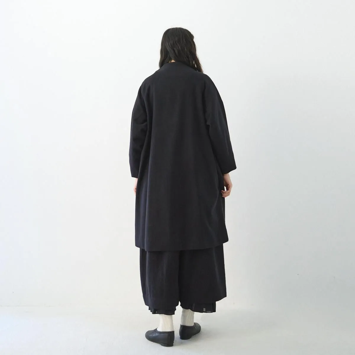 毛布のように暖かく、ふんわりと軽やかな着心地です。裾にかけてほんのり広がりを持たせたデザインで、緩やかなドレープが生まれ、女性らしいシルエットを演出します。