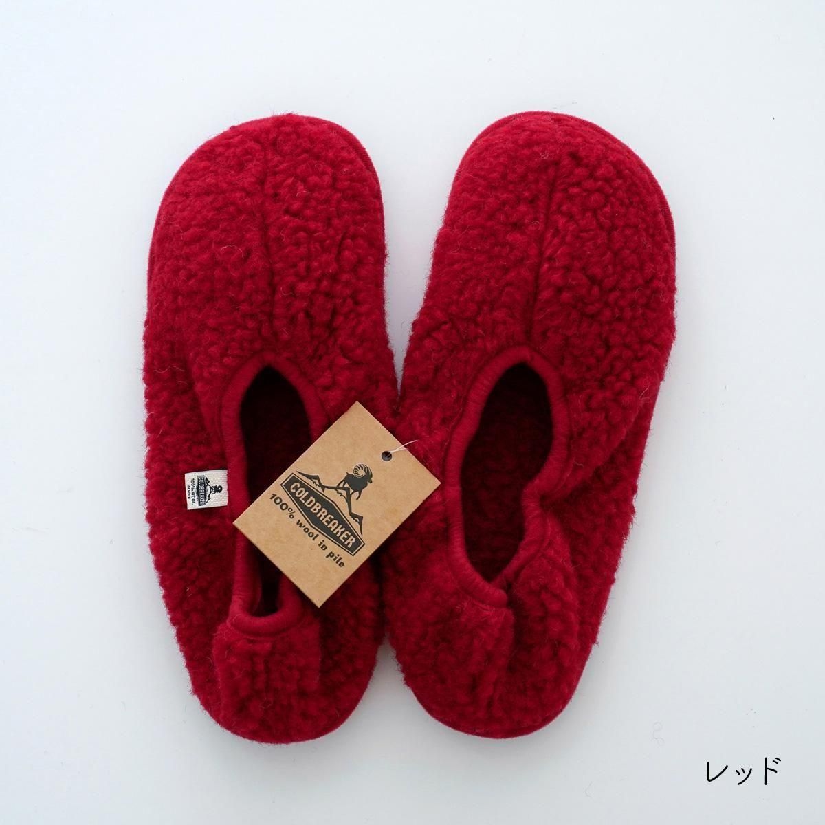 ポーランドのニットファクトリー、COLD BREAKERが手がけるルームシューズ。 ウール100%で保湿、保温性に優れ、足元を温かく包み込みます。 ウール特有のチクチク感を抑える特殊なカット加工により、肌あたりはふんわり柔らか。 履き口はゴム仕様で脱げにくく、心地よくフィットするため、靴下のような感覚でお使いいただけます。 color:(全4色) レッド ライトグレー グレー ブラック size:約23-24cm material:WOOL 100% 取り扱い店舗・・・dieci kyutaro店 1F -------------------------------------------------------- CINQ(サンク) CINQは、東京・吉祥寺にある雑貨店。北欧や周辺ヨーロッパ諸国、日本国内からセレクトした、シンプルで長く使える生活雑貨やアンティークアイテムを取り扱っています。どれも日々の暮らしに自然と馴染み、使うほどに愛着が増していくものばかり。また、オリジナルでつくられている傘や財布はCINQの人気アイテムとなっています。暮らしの中にささやかな豊かさを添えてくれる雑貨店です。
