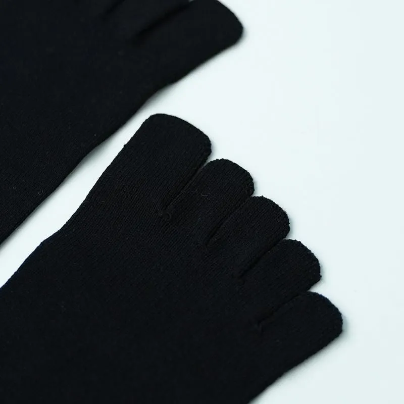 肌に触れる内側を絹にするため、通常とは異なる編み立てを施した特別な五本指ソックスです。
