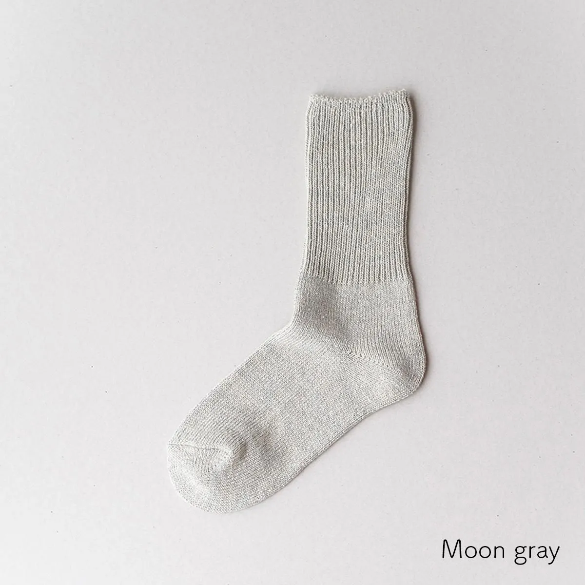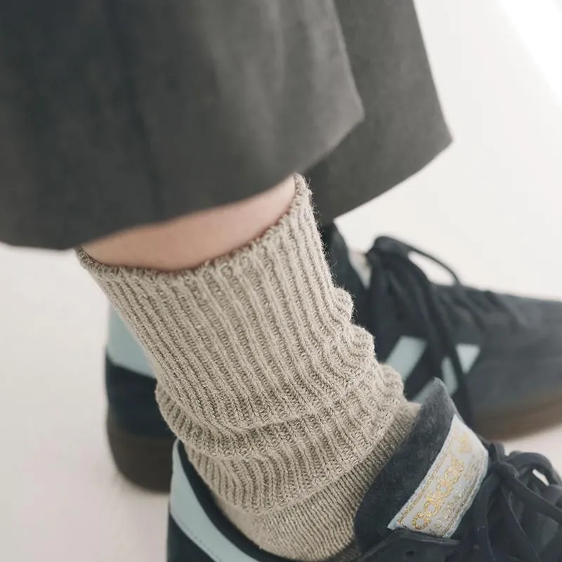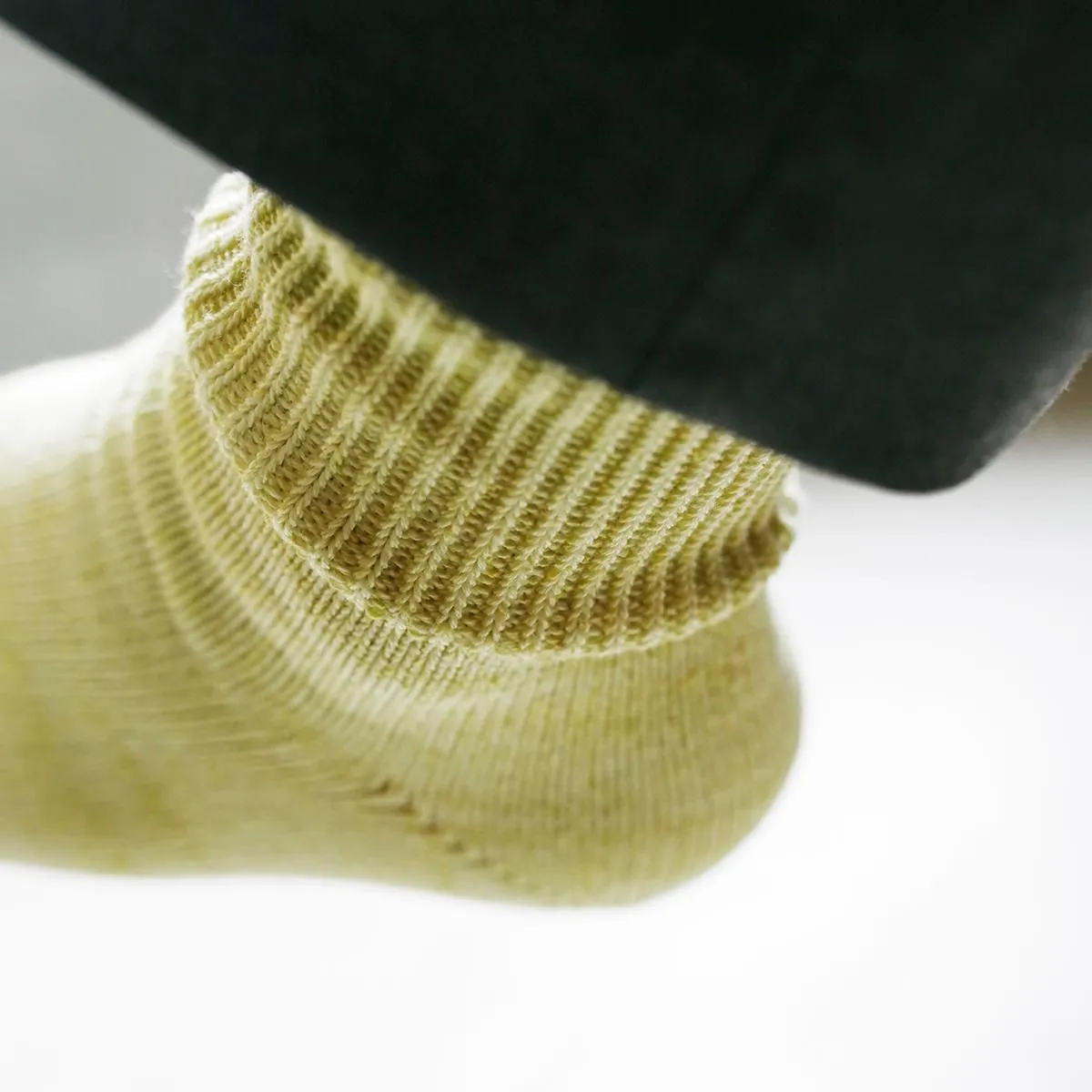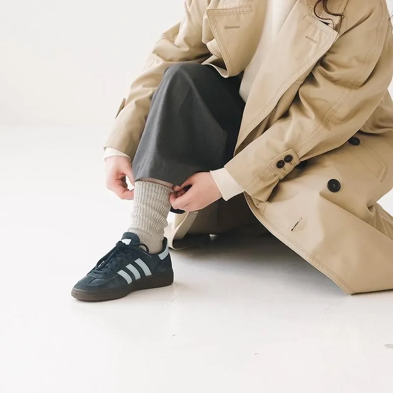 幅広に編めるローゲージの編み機を使用し、履き口のゴムをできるだけ減らして仕上げています。
