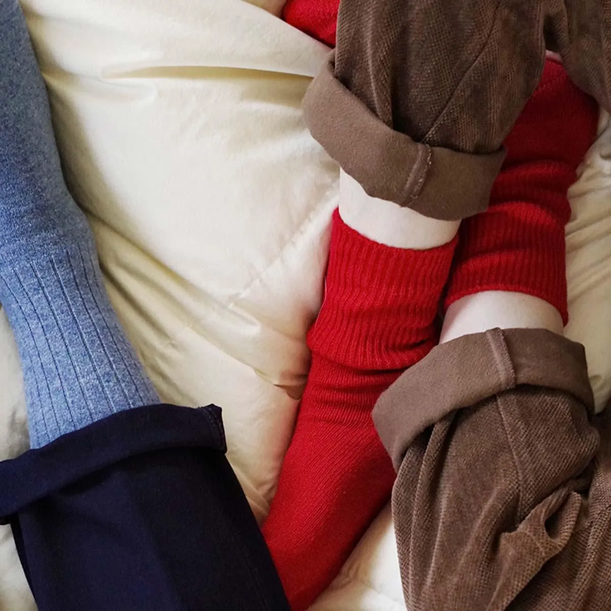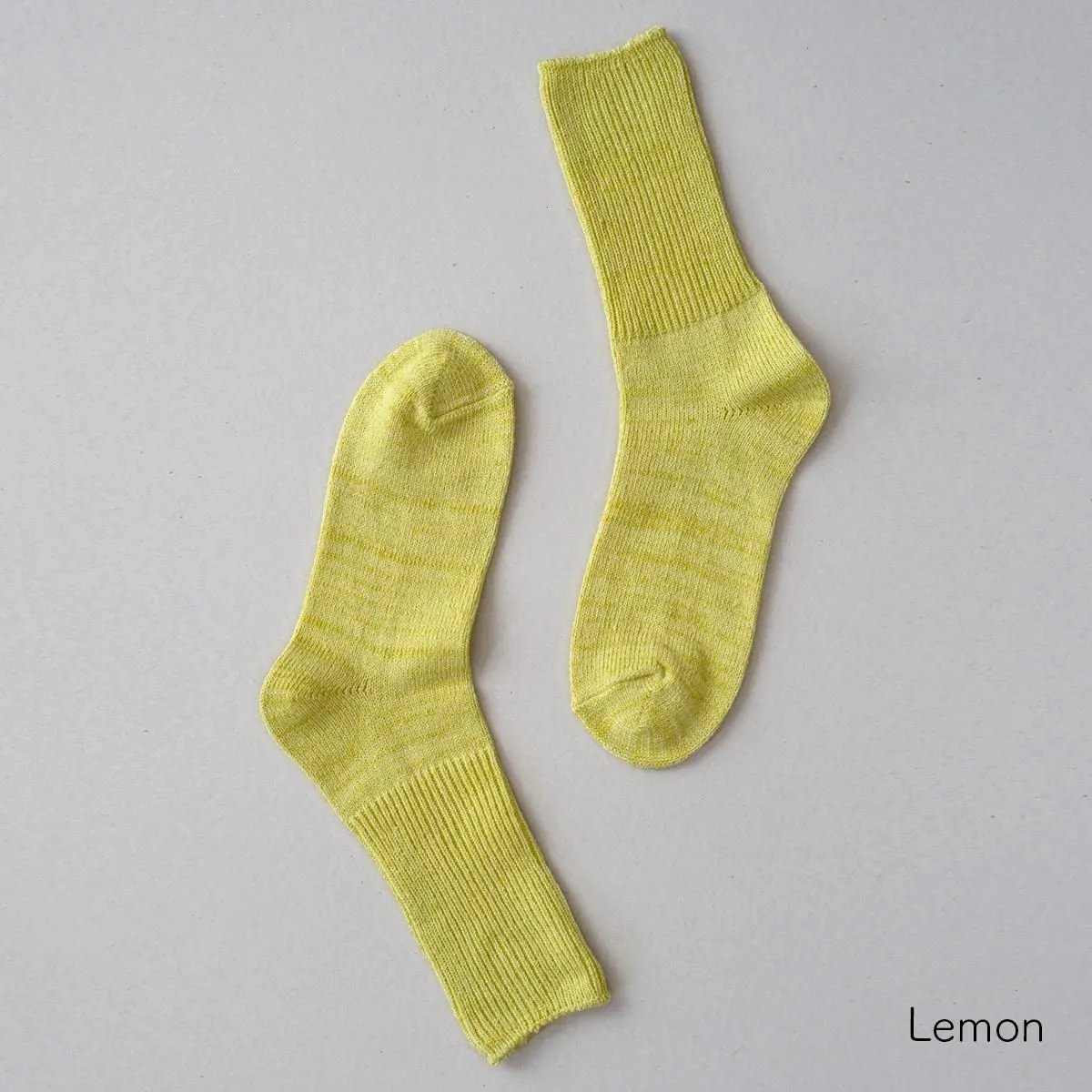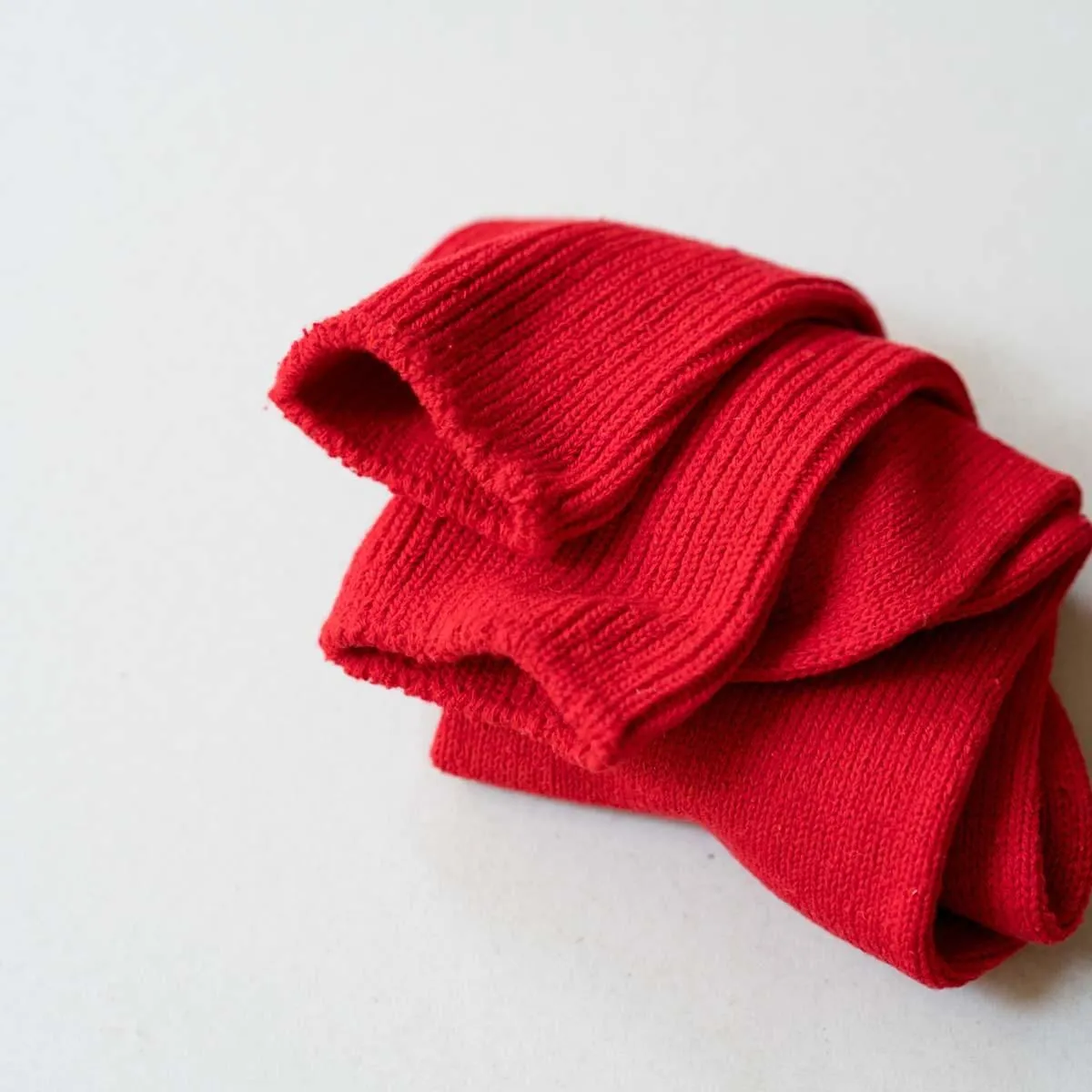 幅広に編めるローゲージの編み機を使用し、履き口のゴムをできるだけ減らして仕上げています。