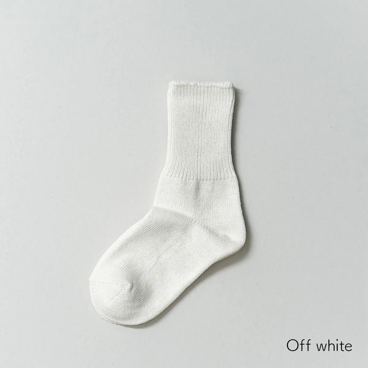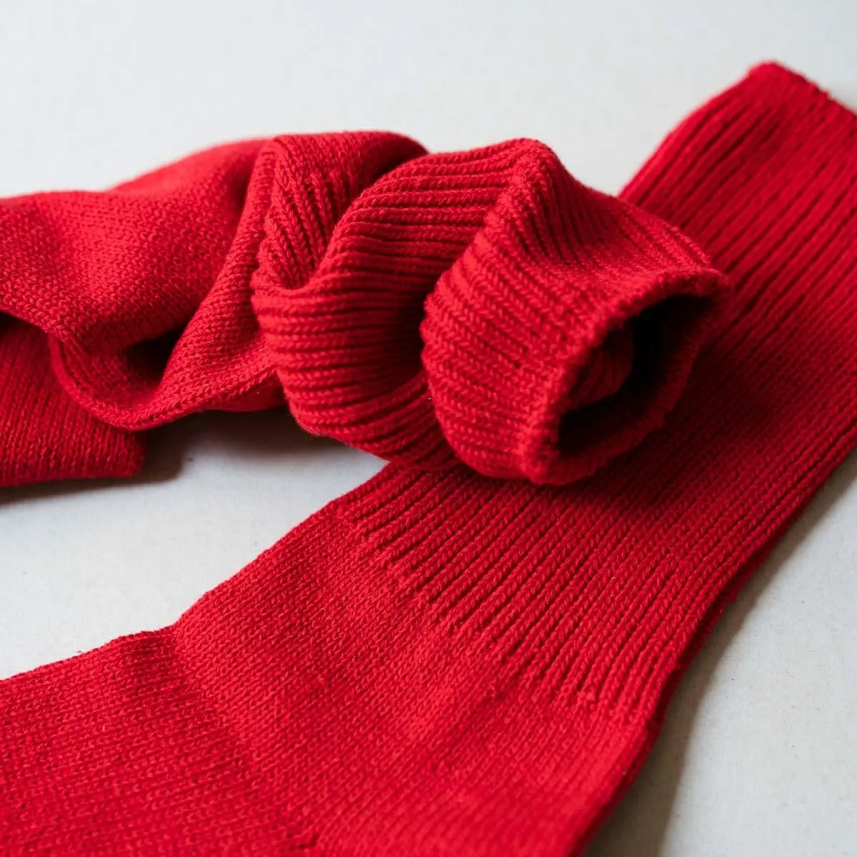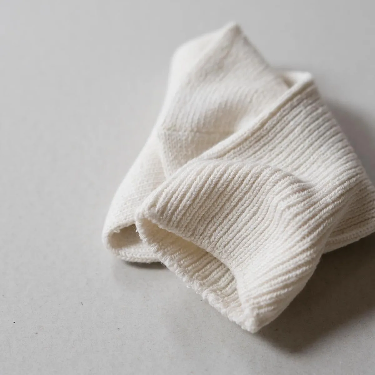 幅広に編めるローゲージの編み機を使用し、履き口のゴムをできるだけ減らして仕上げています。