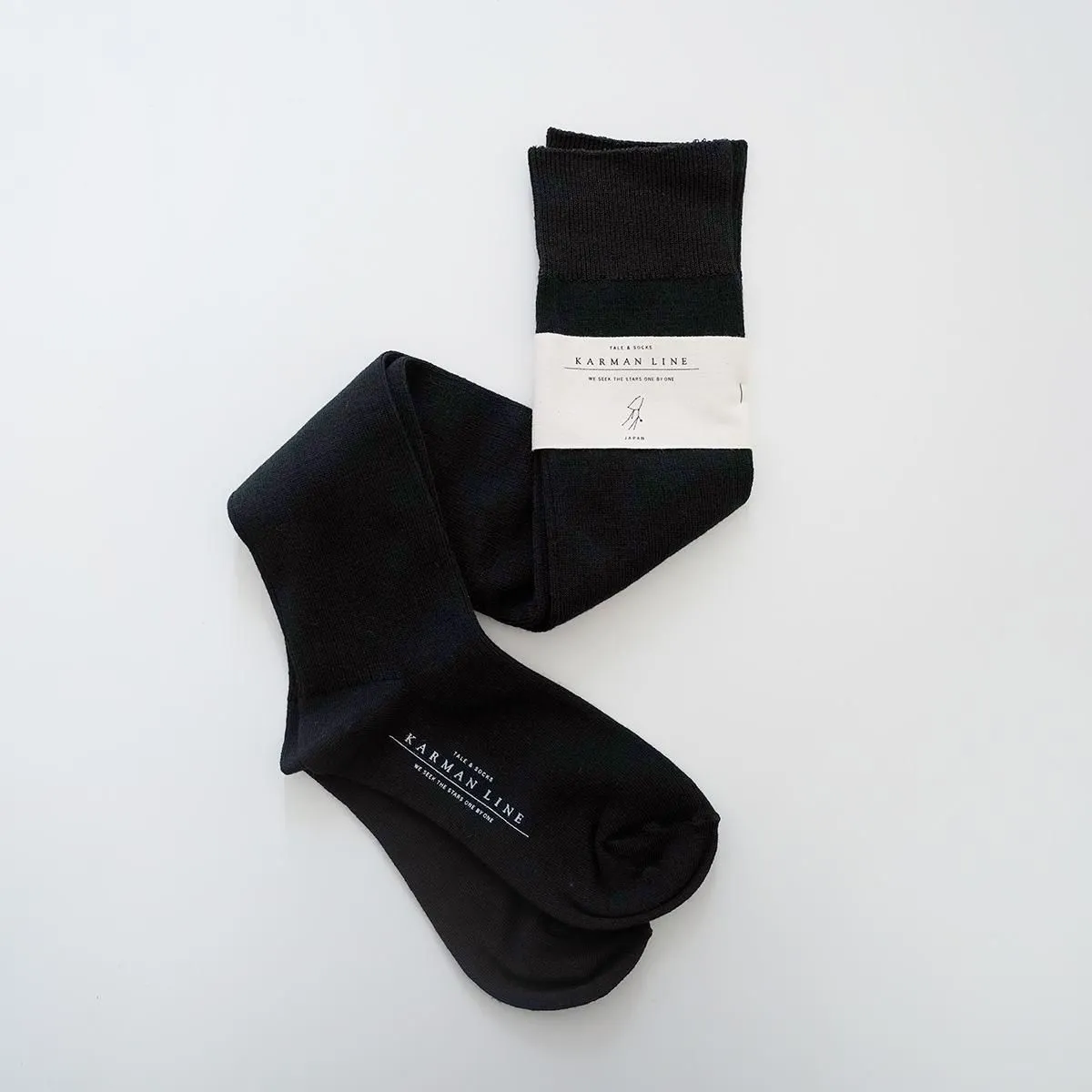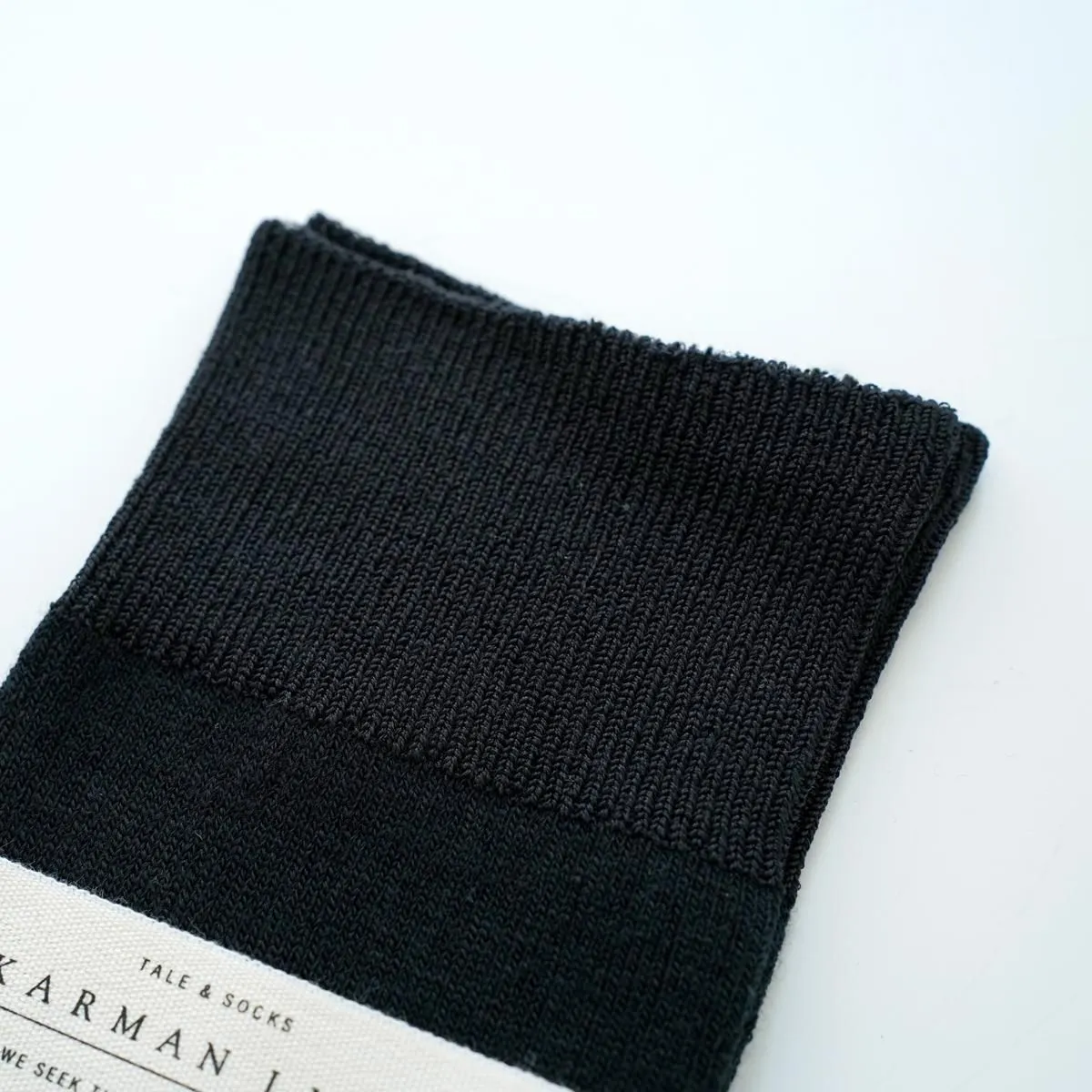 KARMAN LINEは、奈良県で生まれた靴下ブランドです。上質な素材と繊細な編み立てによって、履き心地のよさと美しい佇まいを追求しています。日々の暮らしに静かに寄り添うデザインで、シンプルながらも細部にまでこだわりが感じられます。ブランド名は「地球と宇宙の境界線」を意味し、作り手からお客さまへ、お客さまから別のお客さまへと、想いが無限に広がっていくようにという願いが込められています。実用性と詩的な世界観が調和した靴下づくりが魅力です。