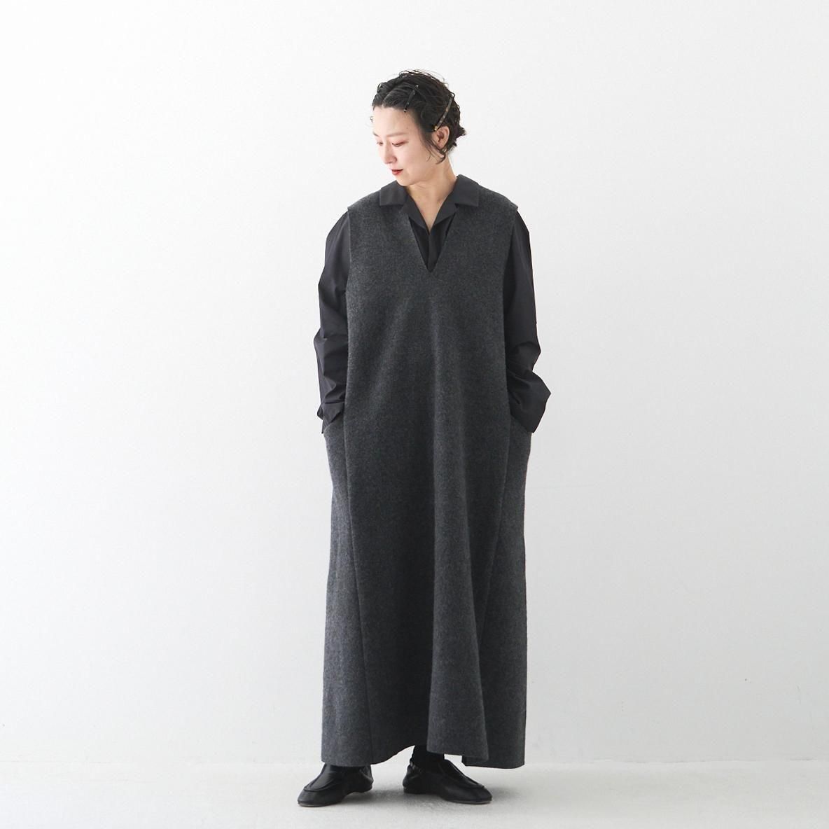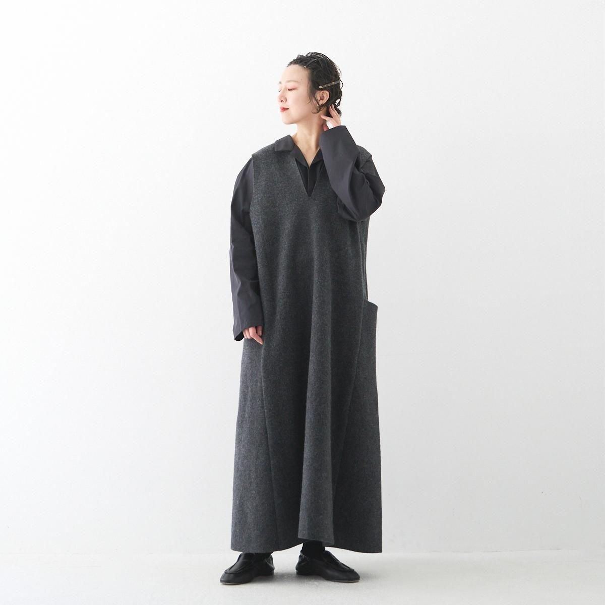 こちらはフェルト生地のワンピース。軽量で暖かく身体に沿う柔らかな素材感です。