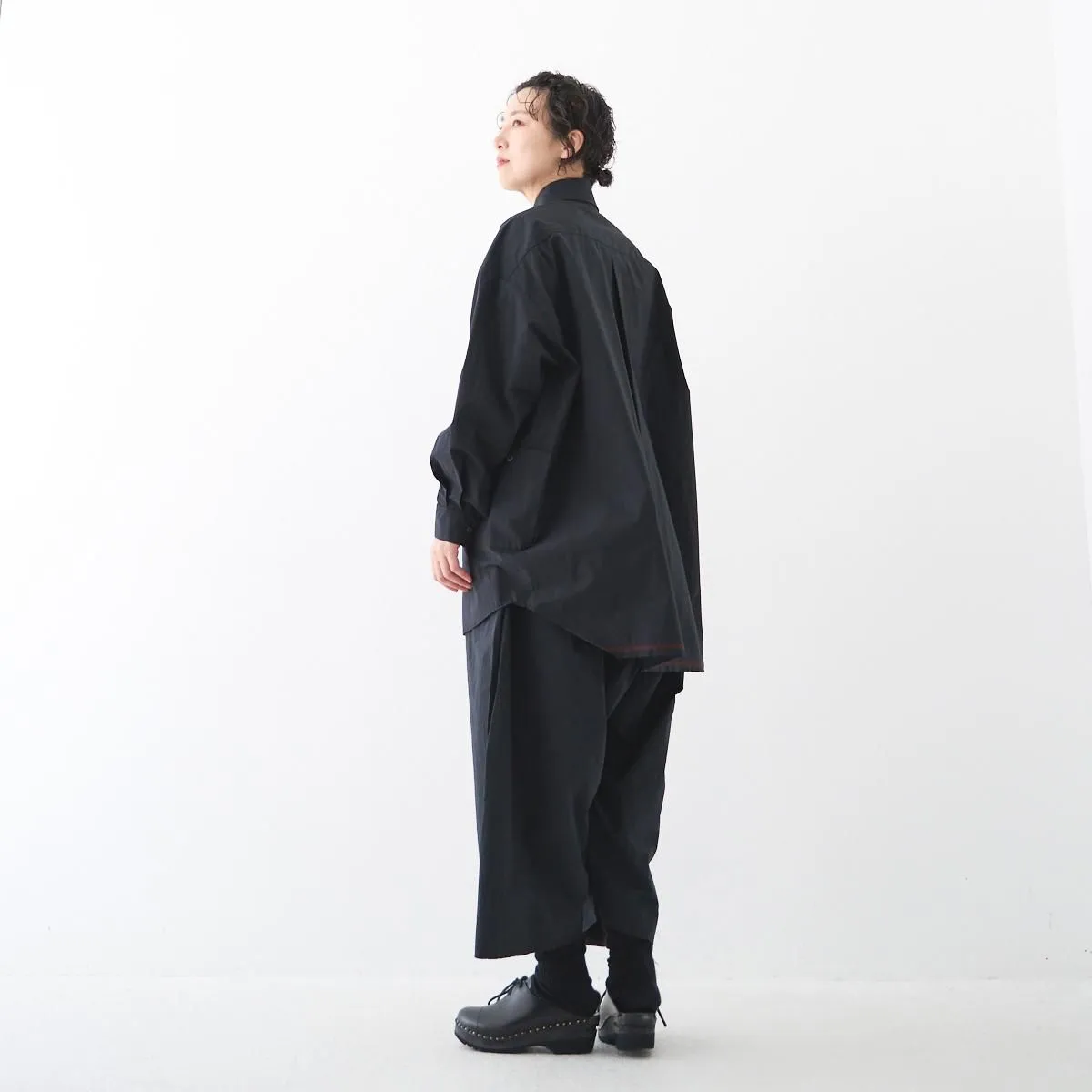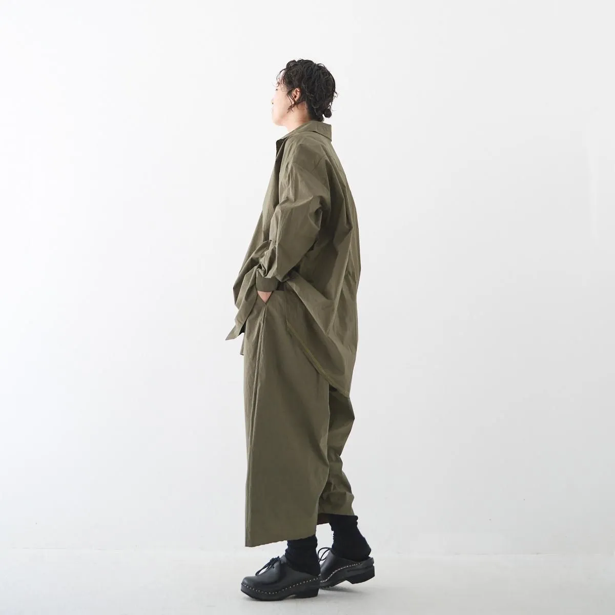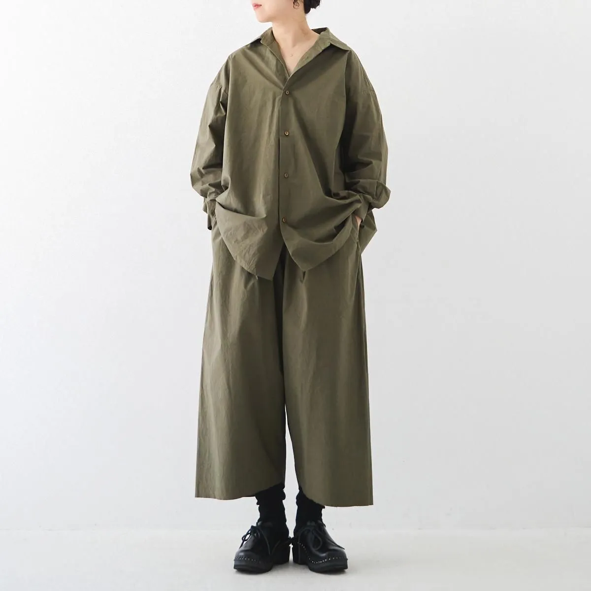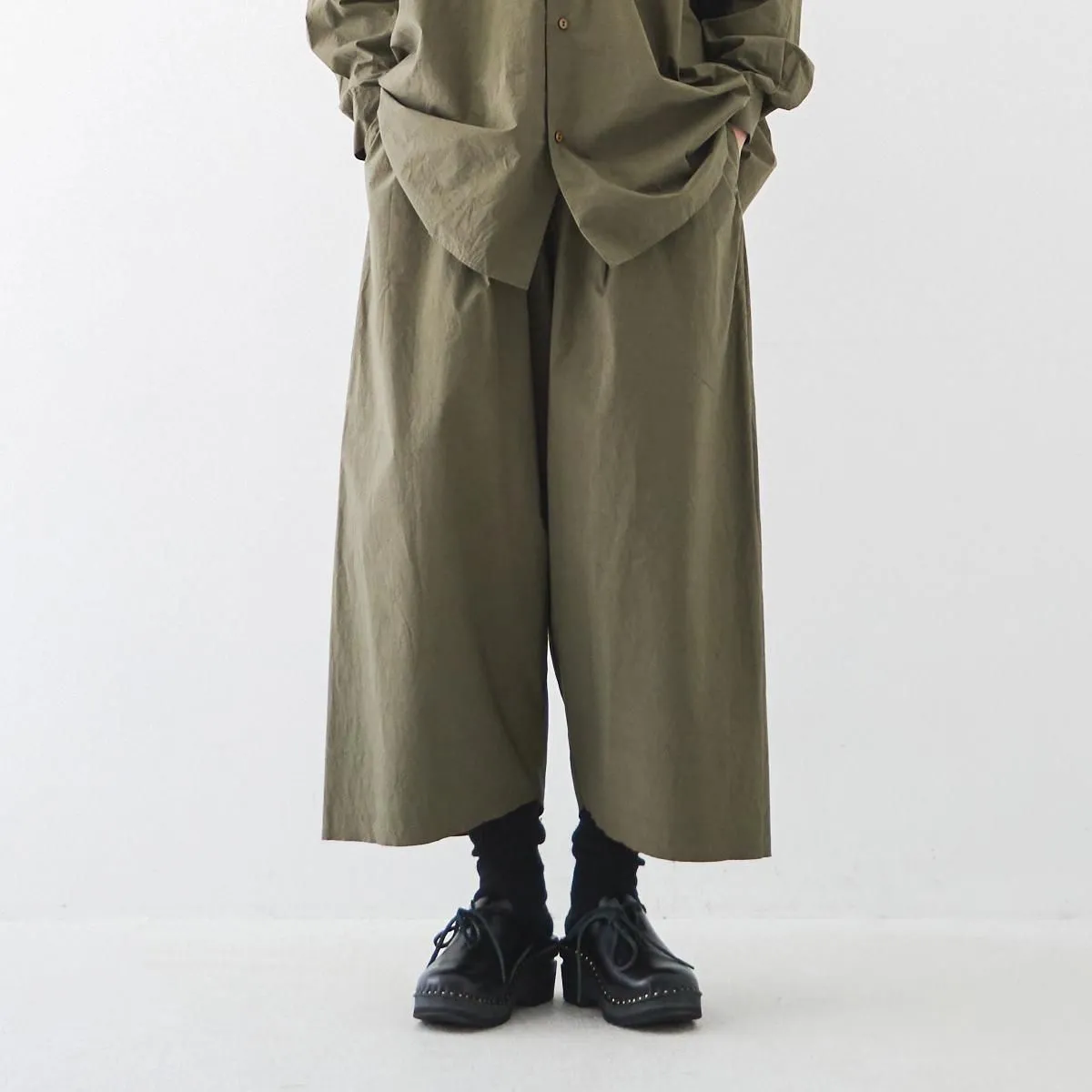 コピー用紙と名付けられたコットン生地は、細く高級な80単糸を使って超高密度に織り上げてから、更に熱を加えて密度を高めた強烈なハリのある素材です。樹脂などの薬品を使わず自然な製法で作られています。 名前から連想する通り、彼氏のズボンを彼女が着たサイズ感をイメージしたパンツです。定番のチャップリンパンツのディテールはそのまま、よりワイドなシルエットに。大きめのボックスプリーツとタックで腰回りにポコッとした膨らみがあります。(オフィシャル引用) 25AW size:1 ウエスト32.5~45cm/股上44cm/股下38cm/わたり46cm ※商品には若干の個体差があるため、採寸には多少の誤差がございます。 color:カーキ・ブラック material:cotton100% model:163cm 取り扱い店舗・・・dieci kyutaro店2F 着用アイテム シャツ:コピー用紙 Boy friend Origami Uniform Shirt ------------------------------------------------------ サリゲナク ブランド名が"ヒムカシ"から"サリゲナク"へと変更となりました。 "ヒムカシ"はデザイナーの名前を示す古語から付けられたものでしたが、 2025年に東京都心から自然豊かな秋川渓谷にアトリエを移転されたことをきっかけに自身は物から一歩二歩と下がって関われていられたらという気持ちを込めて名前は"サリゲナク"に。 size_chart