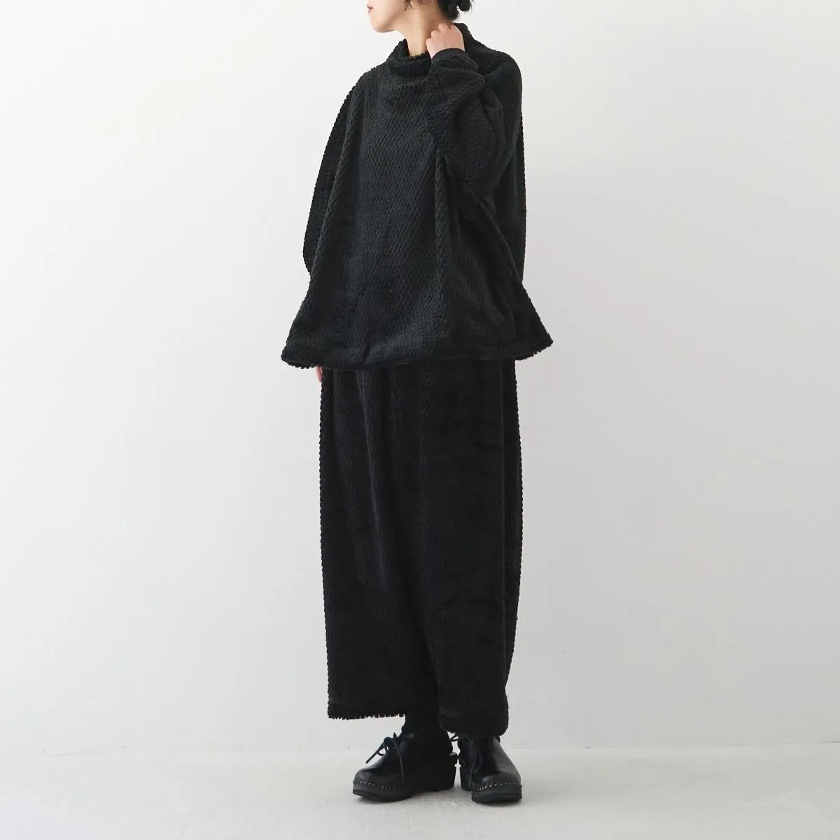 「POLARTEC High loft」は軽さと保温性、快適性のバランスを考えた合成フリースです。 毛足のあるふわふわの生地には、大きな空気層があり保温性と通気性を調節します。驚くほどソフトで軽量、そして抜群の伸縮性あり軽快な着心地。片時も手放せないほどの中毒性があります。 名前から連想する通り、彼氏のズボンを彼女が着たサイズ感のズボンです。お尻周りにたっぷりとドレープが入る立体的なシルエット。表情のある生地感が単調になるボトムスに表情を作りだします。落ち感のある素材なので、程よいボリュームでお召しいただけます。 25AW size:1 ウエスト35.5~45cm/股上46cm/股下44cm/わたり46cm ※サイズ計測の多少の誤差はご了承下さい。 color:Black material:polyester 100% model:163cm 取り扱い店舗・・・dieci kyuatro店2F 着用アイテム トレーナー:Warm! Rum neck mac sleeve trainer (POLARTEC High loft) ストール:thin short muffler -------------------------------------------------------- サリゲナク|Sarigenaku ブランド名が"ヒムカシ"から"サリゲナク"へと変更となりました。 "ヒムカシ"はデザイナーの名前を示す古語から付けられたものでしたが、 2025年に東京都心から自然豊かな秋川渓谷にアトリエを移転されたことをきっかけに自身は物から一歩二歩と下がって関われていられたらという気持ちを込めて名前は"サリゲナク"に。 size_chart