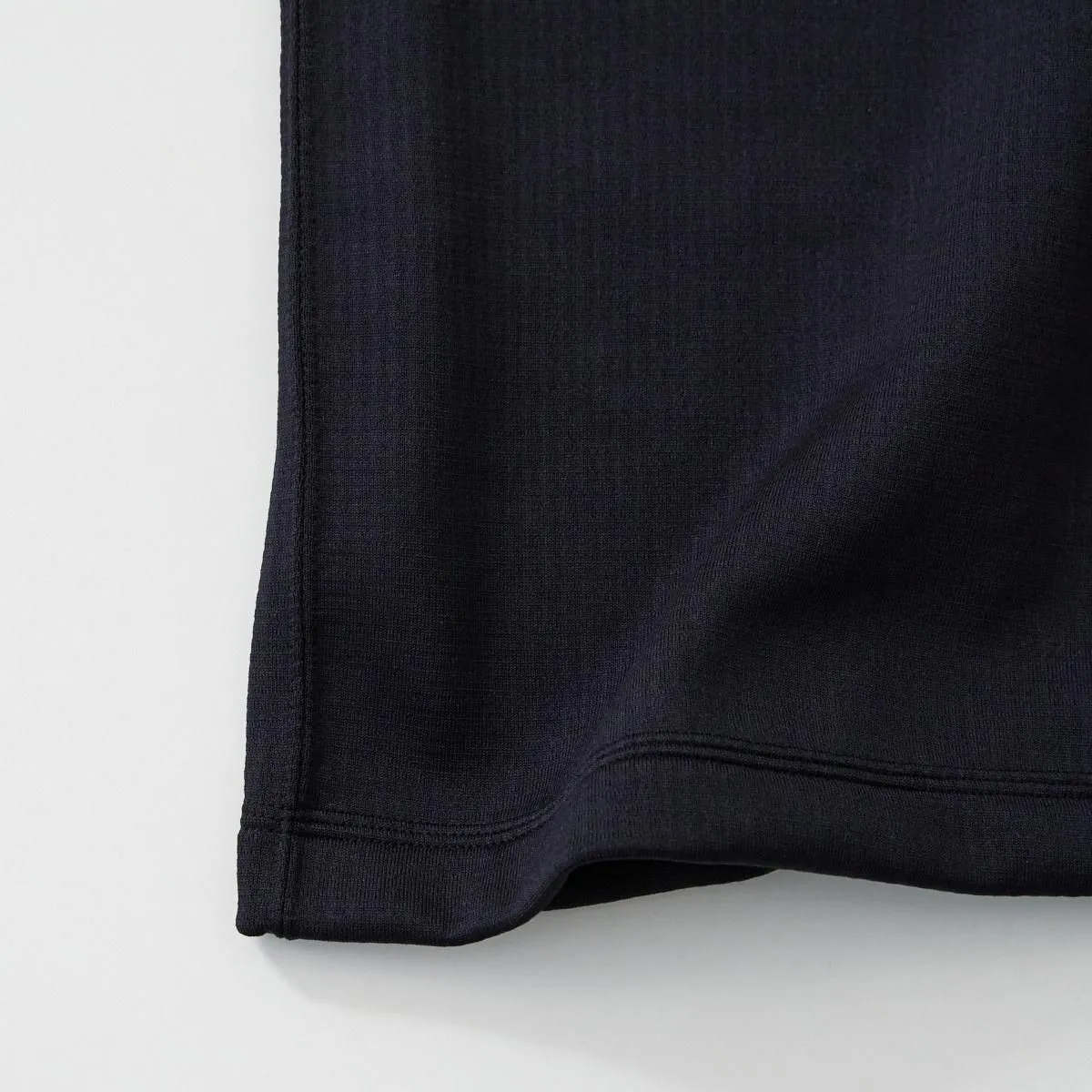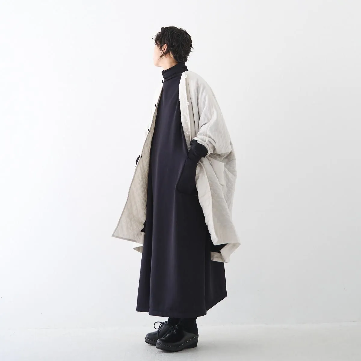 POLARTEC社のハイテク素材、Power Grid™ のワンピース。格子状のグリッド構造で隆起した「山」の部分に空気を含ませて効率よく保温し、軽いのにしっかり暖かいのが持ち味です。一枚あるだけで冬の過ごし方が変わるくらい心強い存在。少しだけ肉厚の素材は、張りがあって身体のラインを拾いにくく、安心感のある着心地です。 また非常に優れた吸汗速乾性のおかげで、乾きにくい冬の気候でも、洗ってからすぐに乾いてくれるのも嬉しいところ。洗濯後もシワになりにくく、嵩張らないので旅行にも最適です。 シンプルなドルマンスリーブのワンピースで、立ち上がりの襟のあいだに忍ばせた泥棒の目出し帽を思わせるスリットは、首元にこもりがちな熱を逃がすベンチレーションとしても機能します。 25AW size:1 着丈120cm/身幅80cm/裄丈80cm ※サイズ計測の多少の誤差はご了承下さい。 color:ブラック material:Polyester 51%/wool42%/Spandex 7% model:163cm 取り扱い店舗・・・dieci kyutaro店2F ------------------------------------------------------ サリゲナク|sarigenaku ブランド名が"ヒムカシ"から"サリゲナク"へと変更となりました。 "ヒムカシ"はデザイナーの名前を示す古語から付けられたものでしたが、 2025年に東京都心から自然豊かな秋川渓谷にアトリエを移転されたことをきっかけに自身は物から一歩二歩と下がって関われていられたらという気持ちを込めて名前は"サリゲナク"に。 size_chart