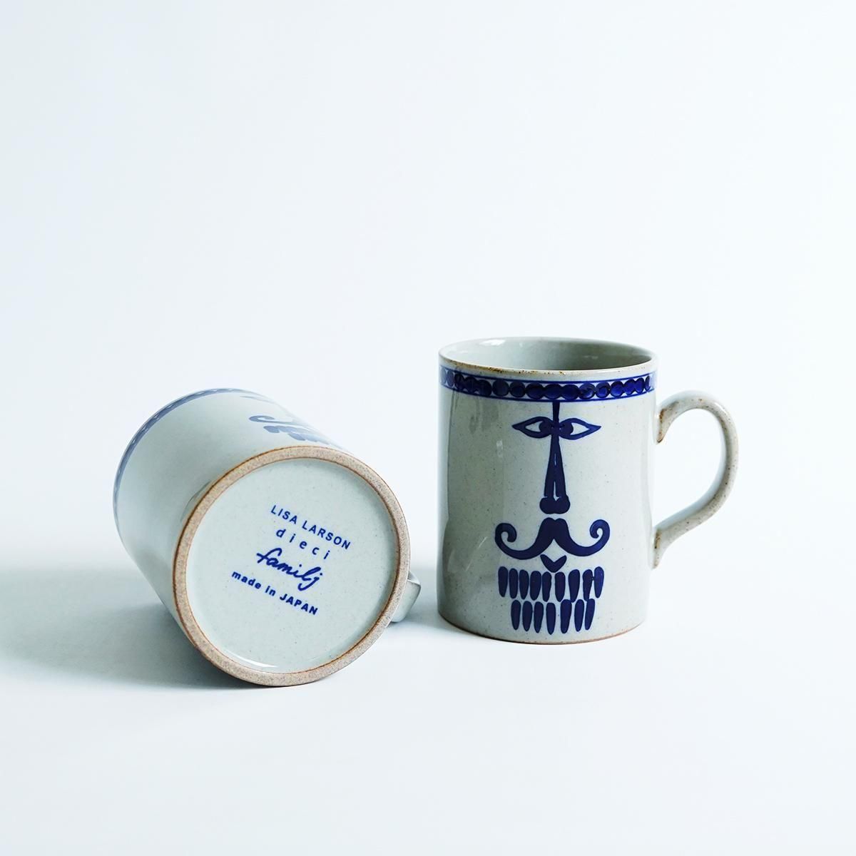 Lisa Larsonと歴史ある焼き物の産地長崎県の波佐見焼きで有名な株式会社西山と共同で制作したfamilj(ファミリ)シリーズのマグカップ"pappa"です。Lisaが大きめのマグカップに手描きで顔を描いたものをアトリエのペン立てにして使っているのをみたdieciのスタッフがぜひともこの愛らしいデザインを施したマグを作りたいと熱望したことがきっかけで生産がスタートしました。株式会社 西山の技術力はLisa自身も信頼をおいてくれており、今回も素晴らしいアイテムが出来上がりました。内容量はたっぷりサイズの大きさなので、安定感もあります。
